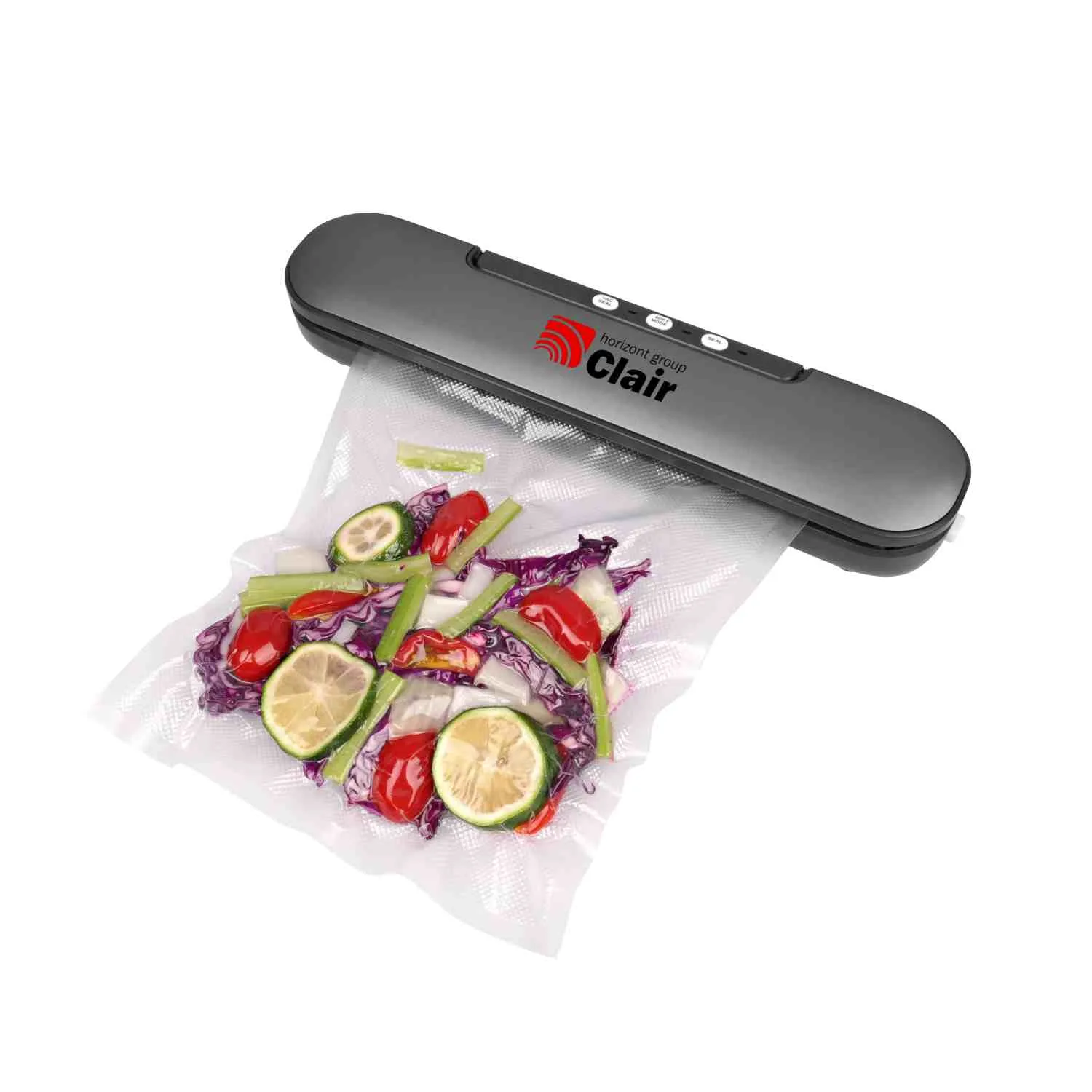 Aparat za vakuumiranje CLAIR Slim je primeren za domačo uporabo, za vakuumiranje različnih vrst živil (zelenjava, sadje, mesni in mlečni izdelki, ribe…).