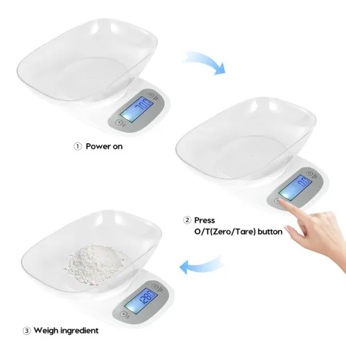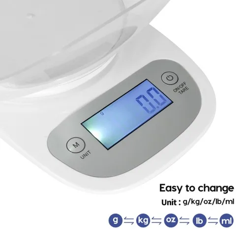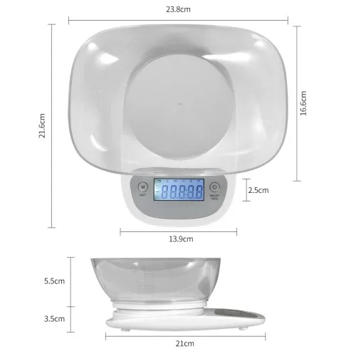 Digitalna kuhinjska tehtnica je natančna in enostavna za uporabo. Ima LCD zaslon, merilni pladenj in deluje na 2×AA bateriji. Izdelana je iz trpežne ABS plastike in primerna za vse vrste merjenja sestavin v kuhinji.