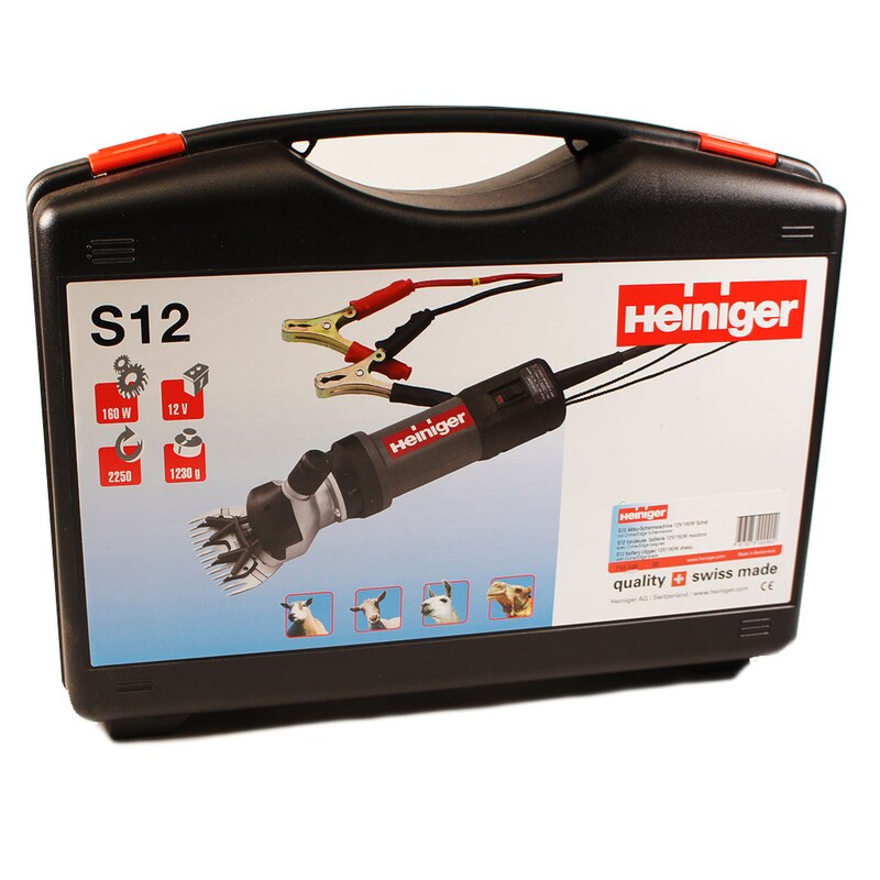 Električne škarje za ovce in koze Heiniger S12 se priklopi na 12V avtomobilski ali motoristični akumulator (50Ah).