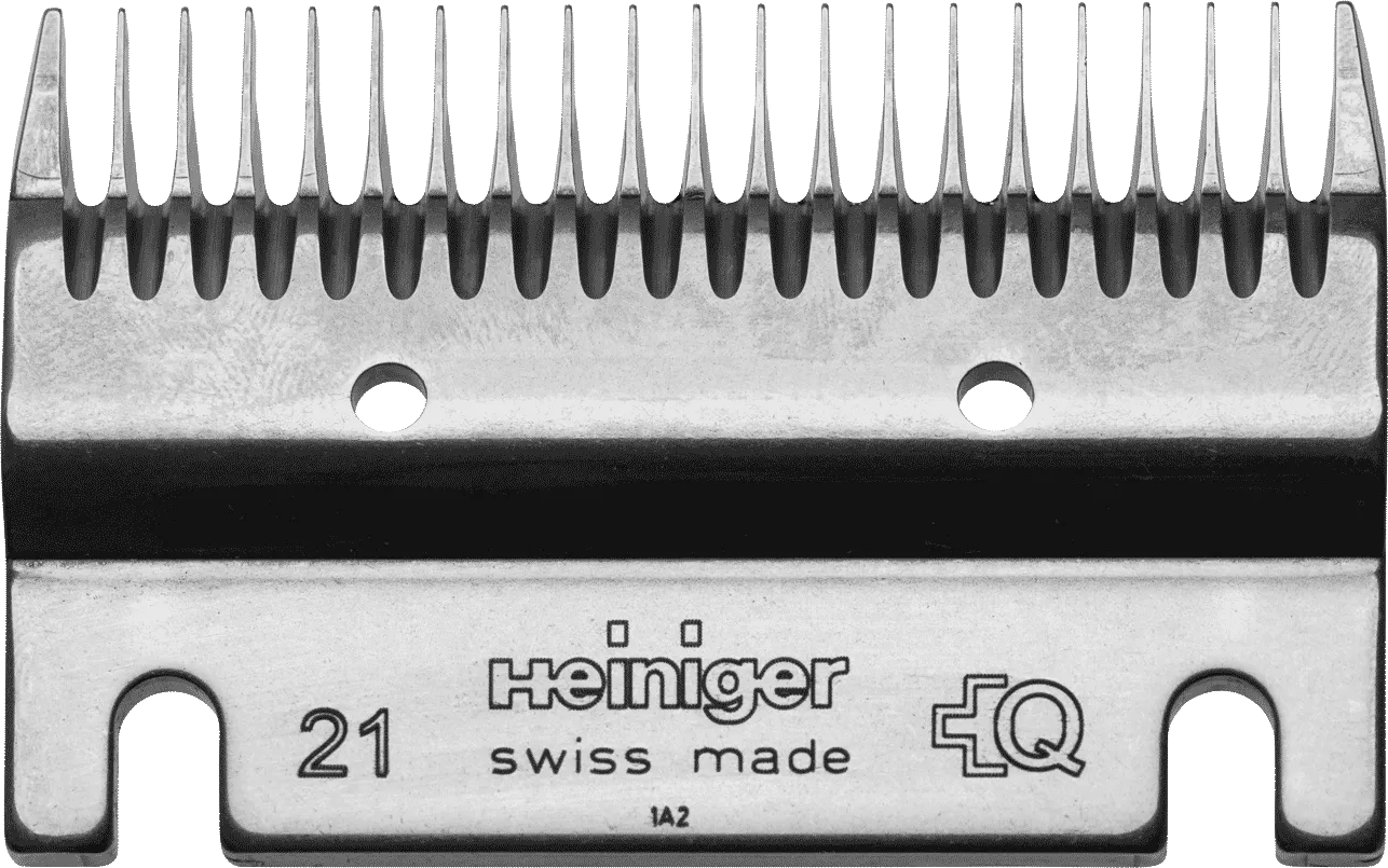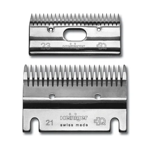 Komplet nožev vsebuje spodnji in zgornji nož (21+23), kvalitetne izdelave, priznanega proizvajalca Heiniger, katere strižejo dlako na dolžino 2-4mm. Noži so primerni tudi za striženje umazane dlake. Noži so standardnih dimenzij in ustrezajo večini škarij.