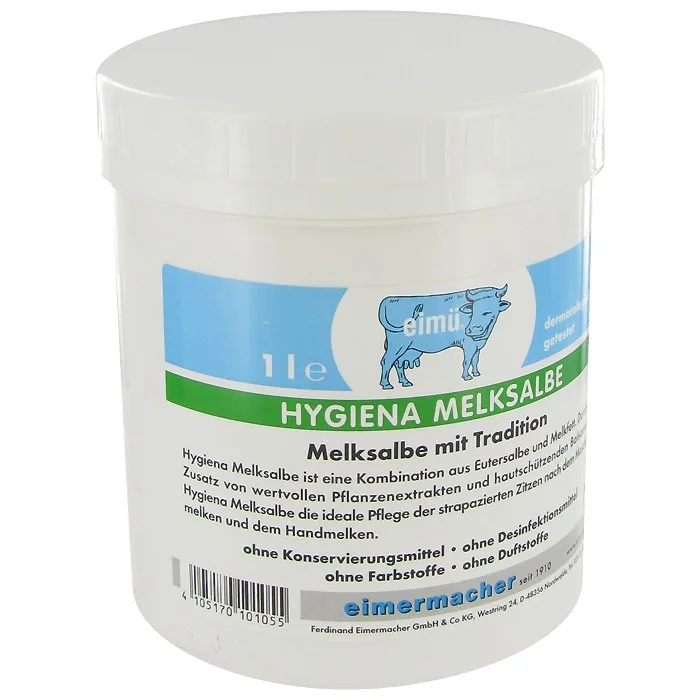 Mazilo za kožo s tradicijo je dermatološko testirano. Eimü higiensko mazilo za kožo je kombibacija mazila za vime in mlečne maščobe. Poleg sestave iz dragocenih rastlinskih izvlečkov in zaščitnega balzama za kožo je higiensko mazilo za kožo idealna nega za napete seske po molži s strojem ali rokami. Brez umetnih barvil in parfumov.