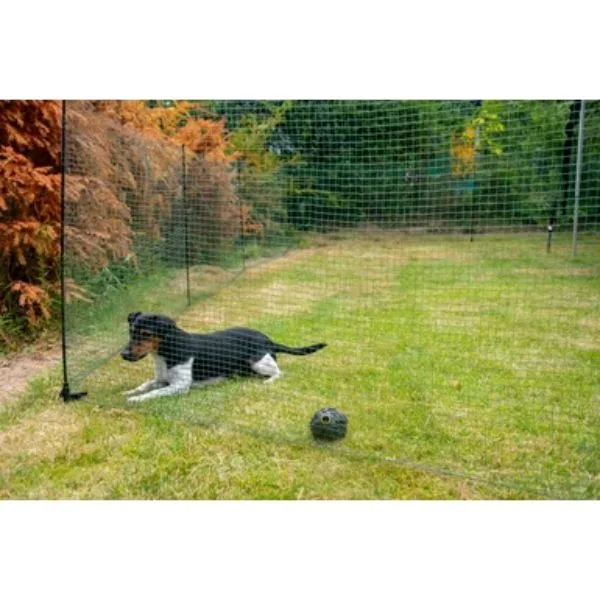 Za ustrezno napetost mreže lahko na palice s pomočjo izolatorjev pritrdite napenjalne vrvi in jih po želji napnete. Mreža za živali je idealna za vaš vrt ali kampiranje – vaš pes bo varen, vi pa brez skrbi glede pobegov, razburjenih sosedov ali uničenih gredic.