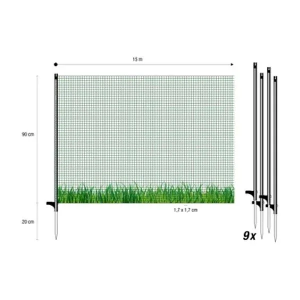 • Varna in stabilna – priloženih je 19 majhnih količkov, ki držijo mrežo čvrsto na tleh in preprečujejo, da bi jo živali dvignile s smrčki in pobegnile.