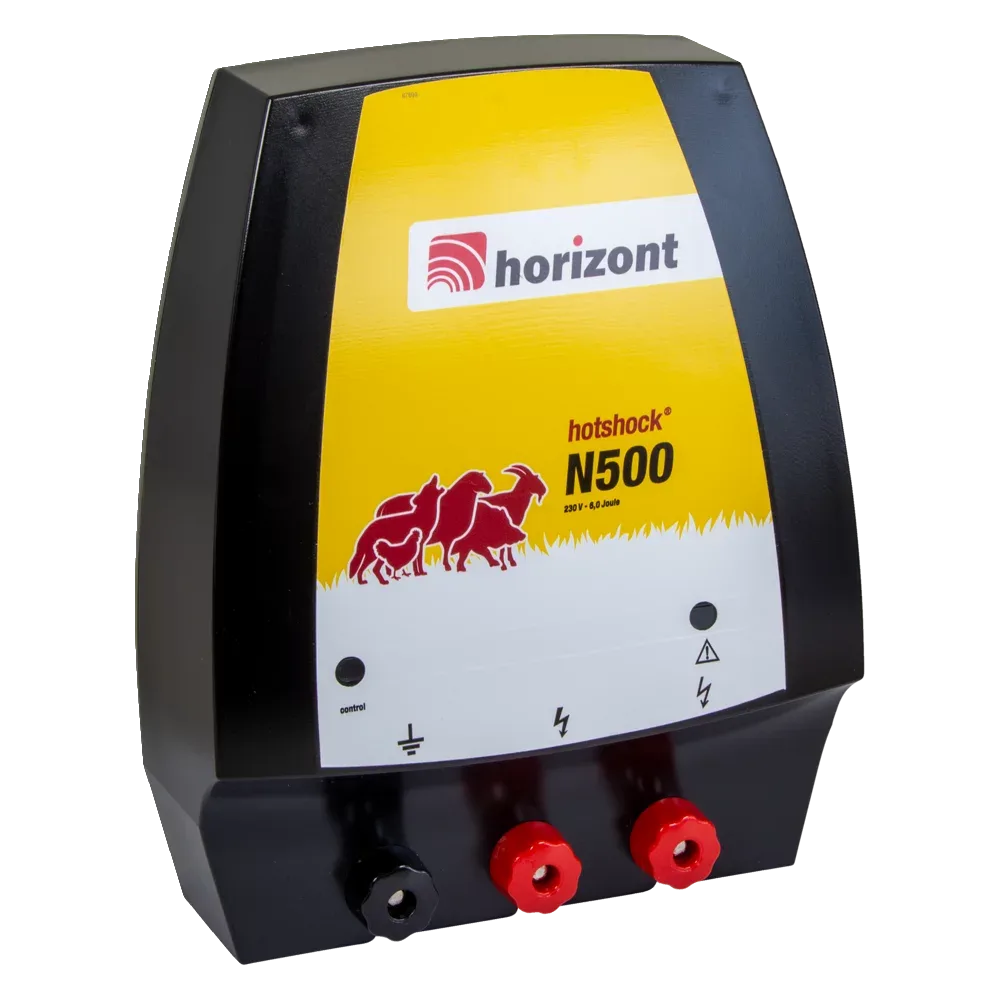 Električni pastir Horizont Hotshock N500 je primeren za konje, drobnico, divje prašiče, perutnino, srnjad in volkove.