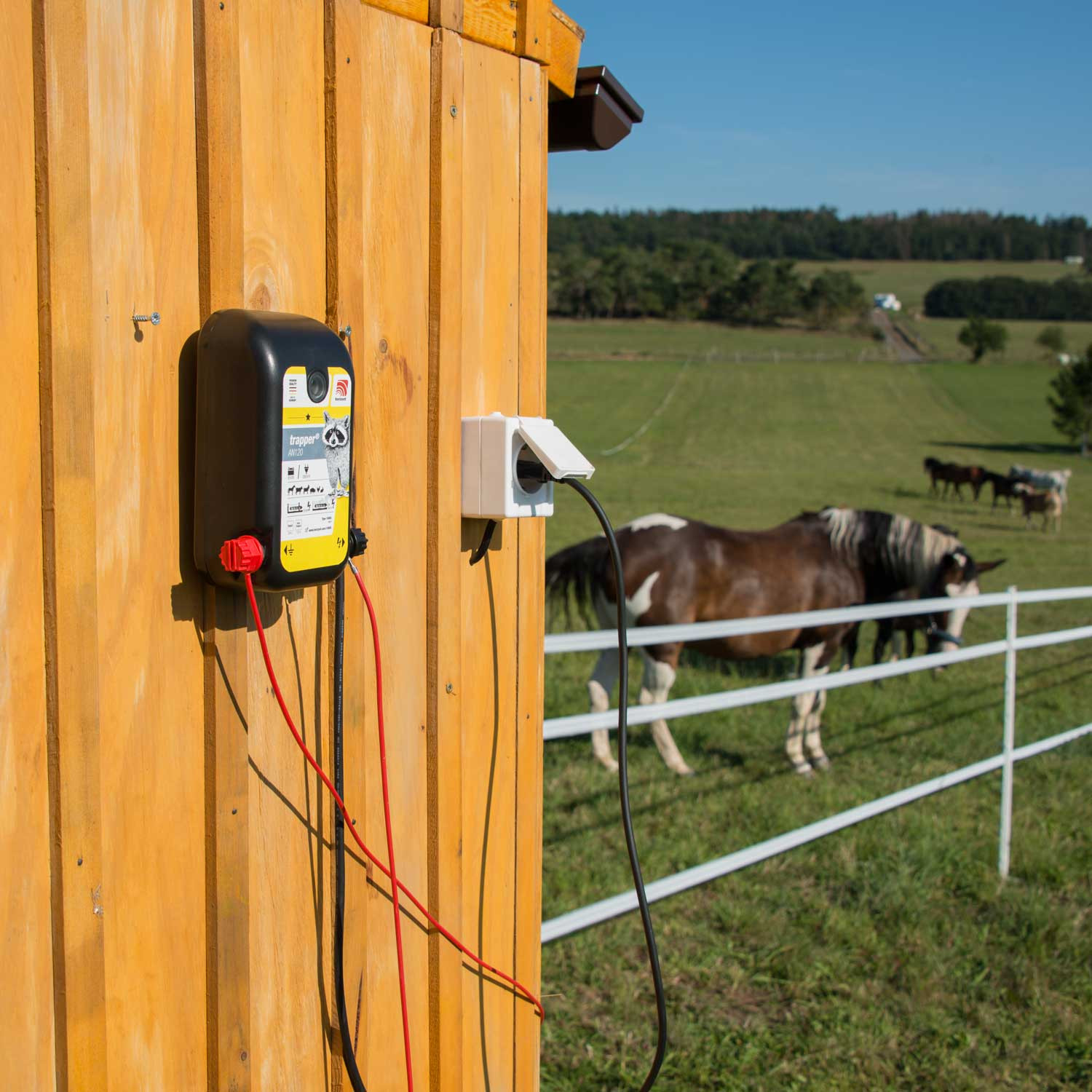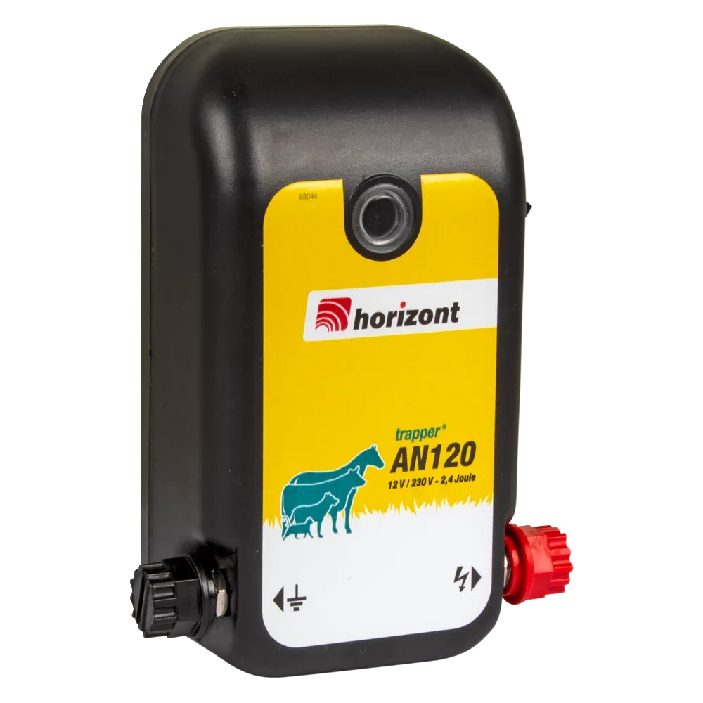 Električni pastir Horizont Trapper AN120 kombi se lahko uporablja v kombinaciji z 12V akumulatorjem (ni priložen) ali pa ga priklopimo samostojno na električno omrežje 230V (priložen adapter).