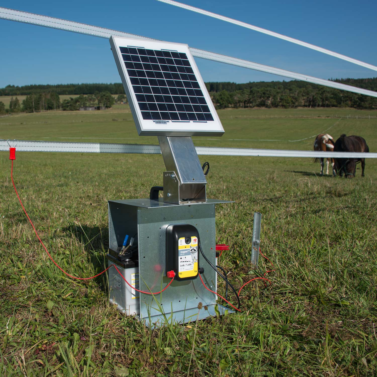 Električni pastir Horizont se lahko ob dokupu 12V/100Ah akumulatorja in 20W solarnega panela nadgradi, tako da uporaba postane bolj ekonomična ali pa v primeru izpada električnega omrežja naprava deluje neprekinjeno, do ponovne vzpostavitve.
