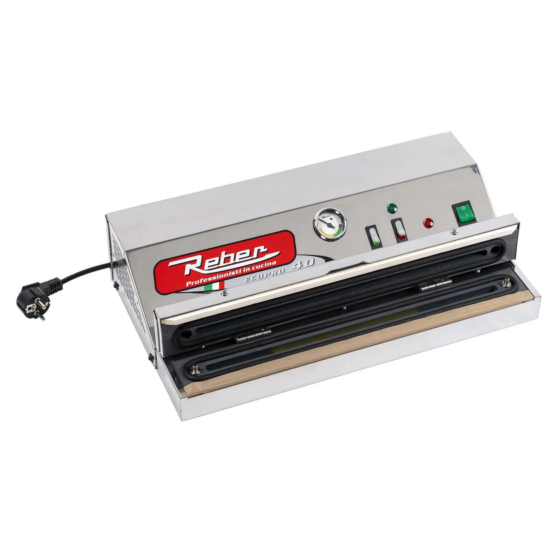 Profesionalna Reber vakuumirka za avtomatsko vakuumiranje vseh vrst živil. Ohišje je iz nerjavečega jekla, kar zagotavlja dolgo življenjsko dobo stroja. Stroj za vakuumiranje je namenjen profesionalni rabi.